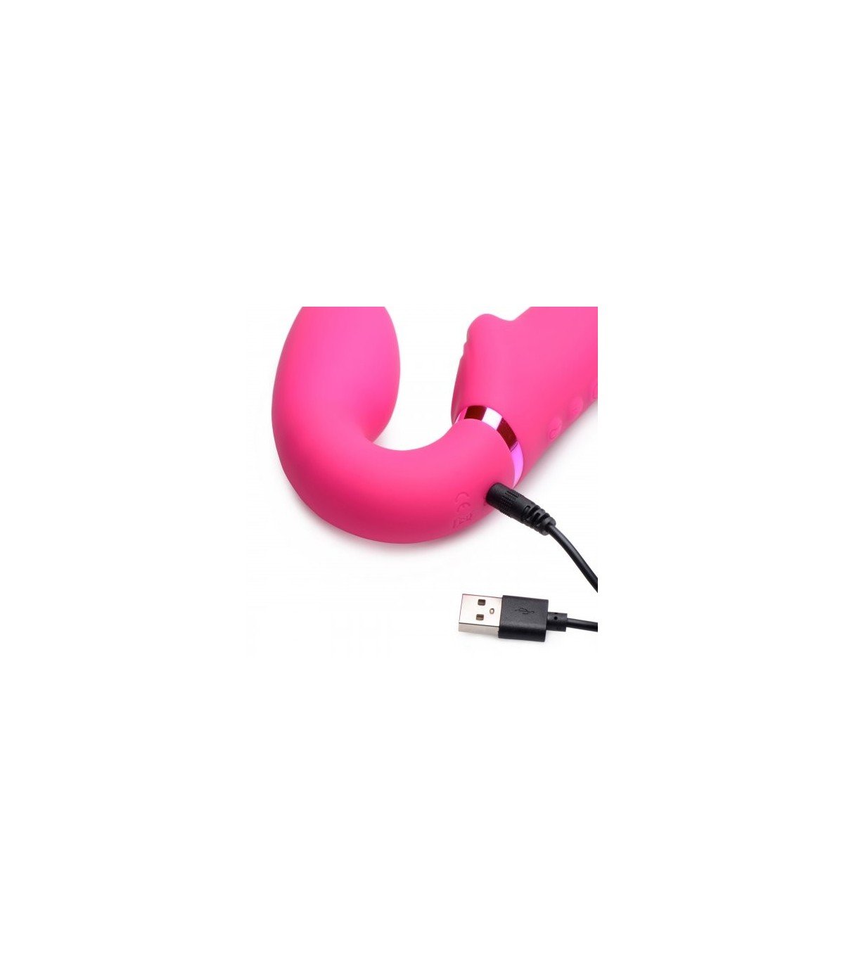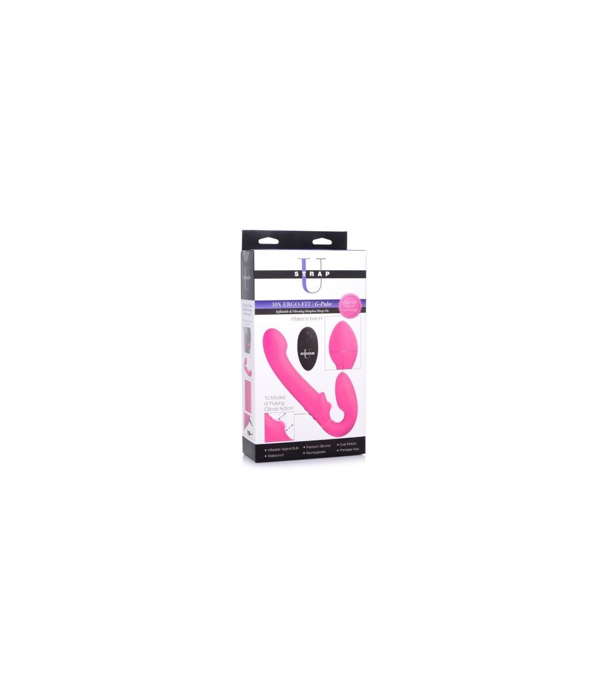 Arnés sin base para mujer inflable en la vagina y movimiento pulsatorio en clitoris para utilizar en pareja muy flexible para una mayor adaptabilidad. La parte vaginal puede inflarse para aumentar el tamaño a introducir.