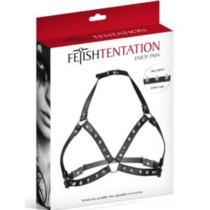 Arnés para mujer totalmente ajustable. Simula piel. Lleva pinchos a lo largo del arnés.
