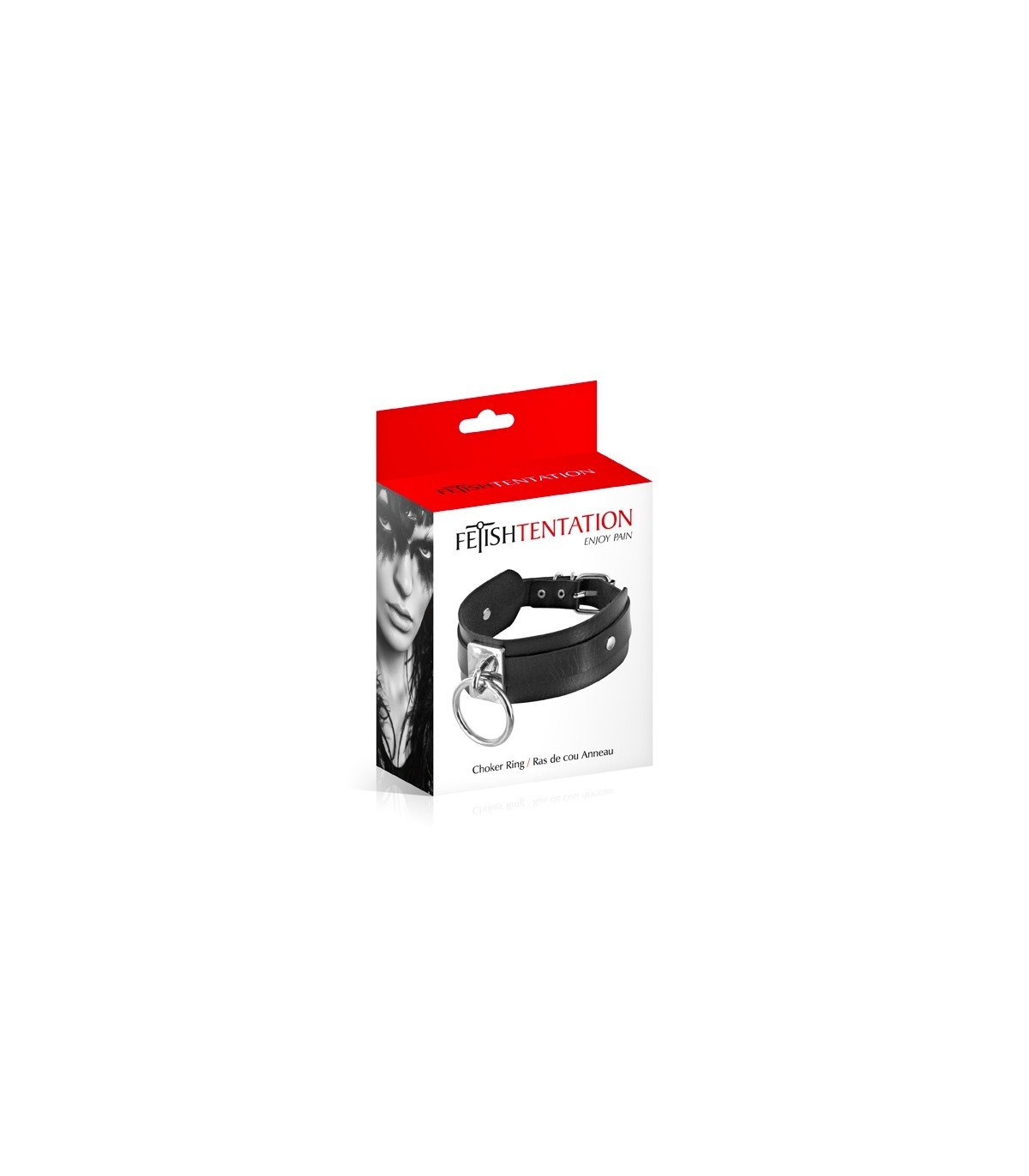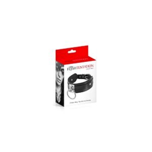 Collar negro ajustable presentado en caja.