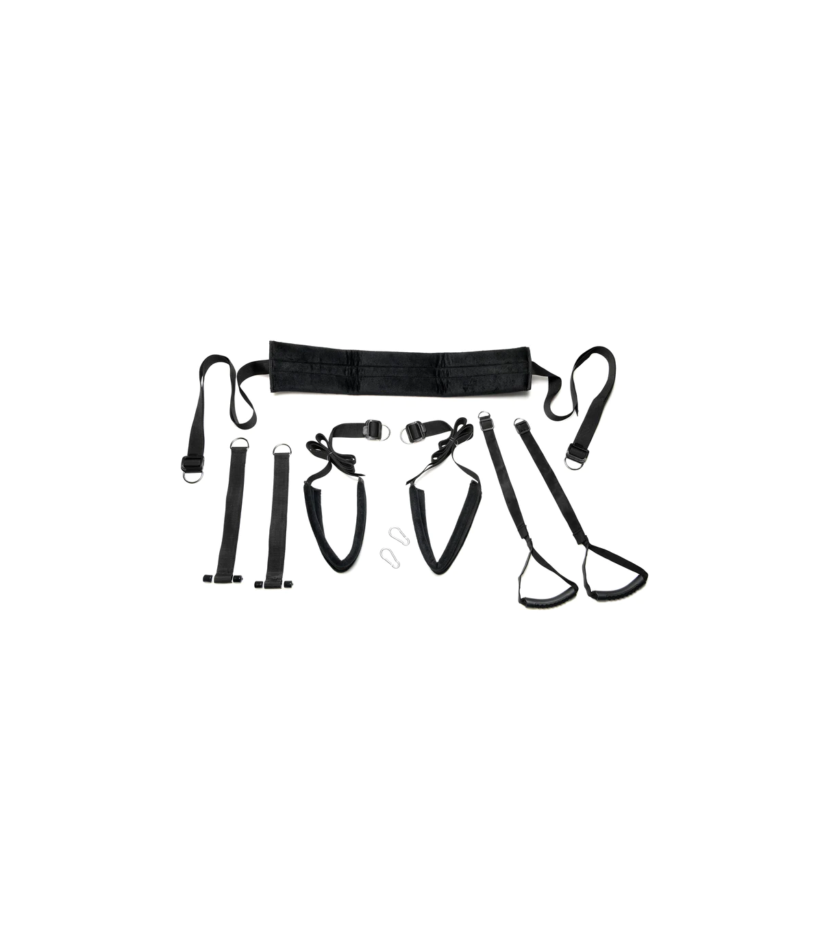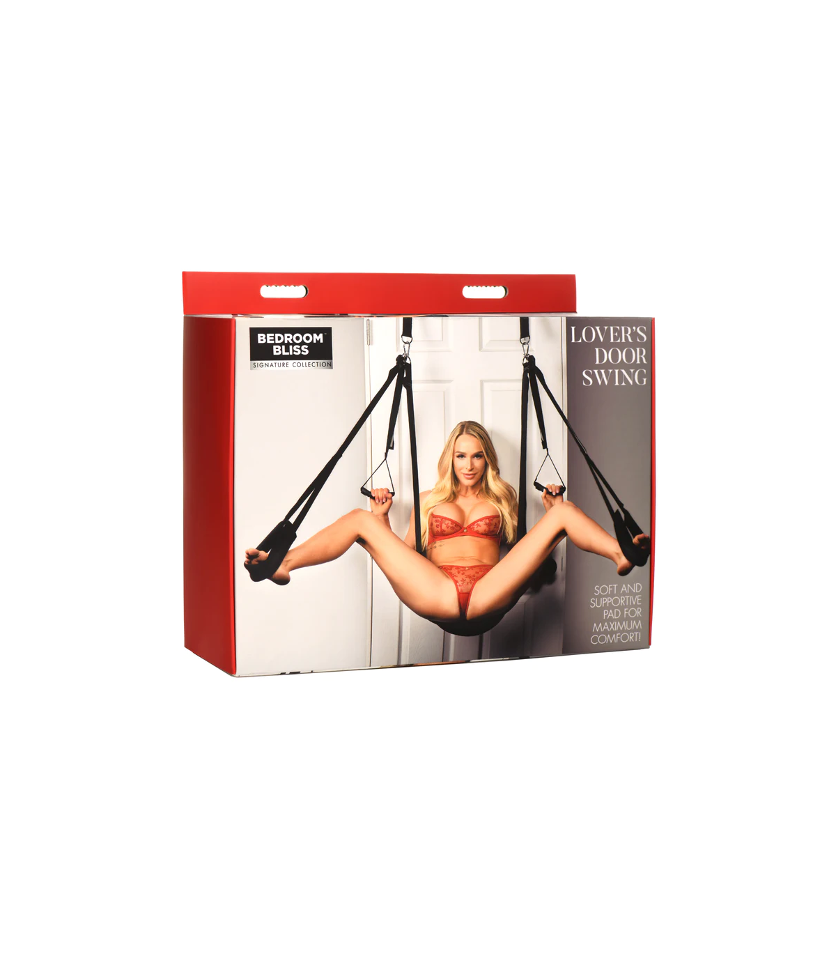Eleva tu placer con este Leber’s Door Swing. Este cabellón sexual se rompa sobre una puerta cerrada de correas de nylon y se mantiene en su lugar a través de los cilindros de plástico ABS que protegen la puerta de rasgar y rascar. El nylon fuerte y duradero está acolchado con cojines de poliéster que sostienen los muslos y el fondo. Dos mangos cuelgan del marco de la puerta también para que puedas levantarte para ajustar tu posición y sentirte más seguro. El colmillo puede soportar hasta 300 libras. Las almohadillas de asiento, las almohadillas para las piernas y los rasgubros de la mano son todos ajustables. Las correas son fáciles de enganchar sobre una puerta o clip al soporte de oscilación sexual. Manténgase limpio según sea necesario o lave a máquina las correas y almohadillas. Todos los materiales están libres de ftalatos y sin níquel.