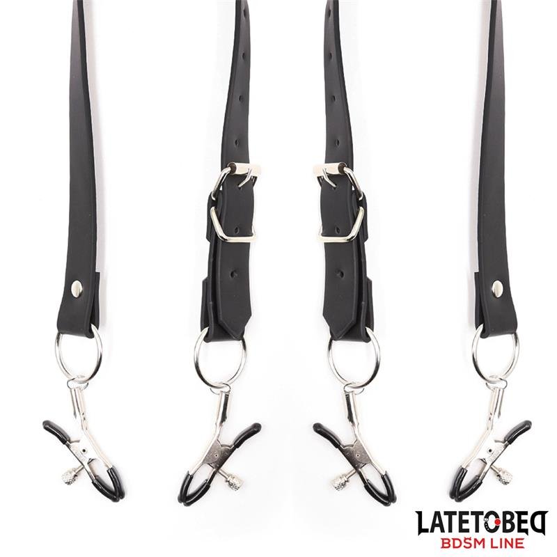 - Incluye 2 correas de bondage para piernas con pinzas para clítoris