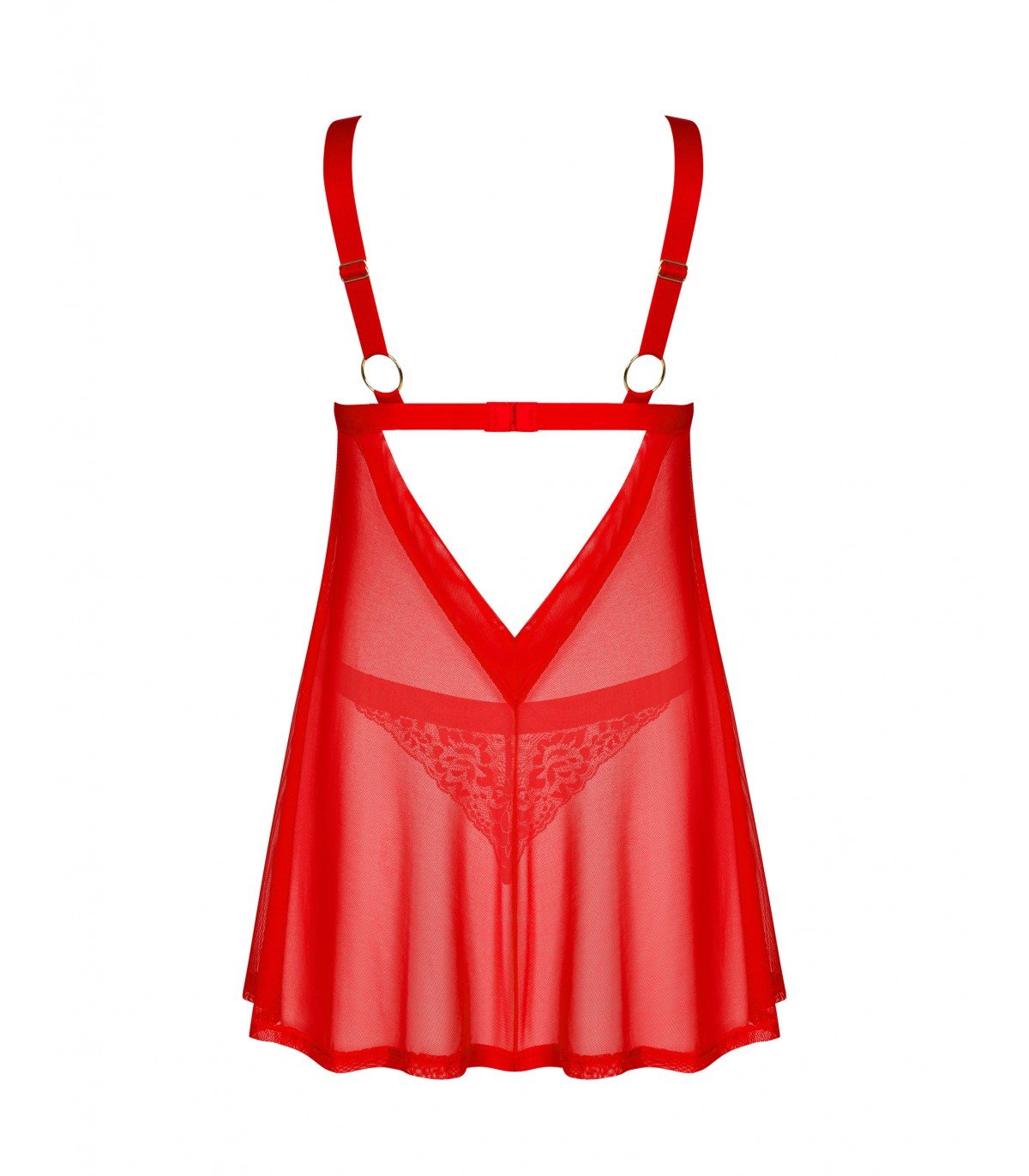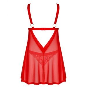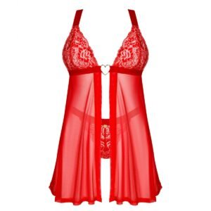 Bonito babydoll con transparencias en el pecho diseñado en color rojo pasión.