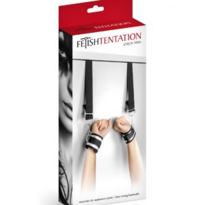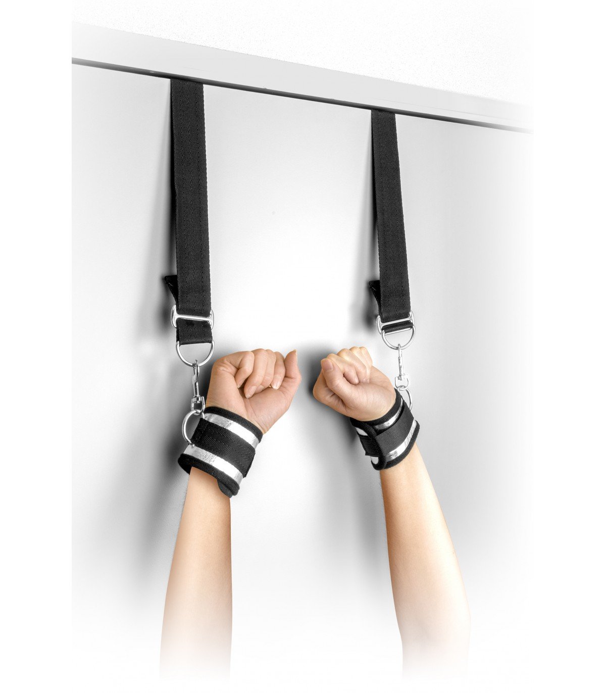 Esposas con velcro ajustables para colocar sobre la puerta. Termina en unas pesas que impide que la esposa se suelte de la puerta.