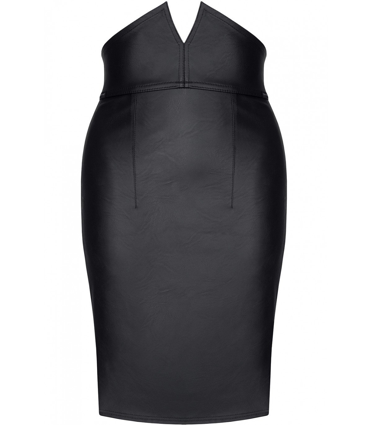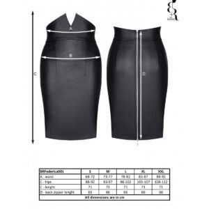 Impresionante falda con cremallera muy ajustada en caderas en estilo piel realizado en ecopiel. Cuenta con una cremallera en la parte central de la falda