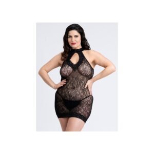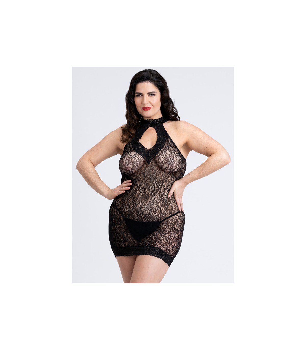 Un elaborado y delicado encaje floral muy femenino deja entrever la piel, mostrando tu figura con un efecto irresistible. Por detrás, una provocativa abertura incita a una buena sesión de azotes.
