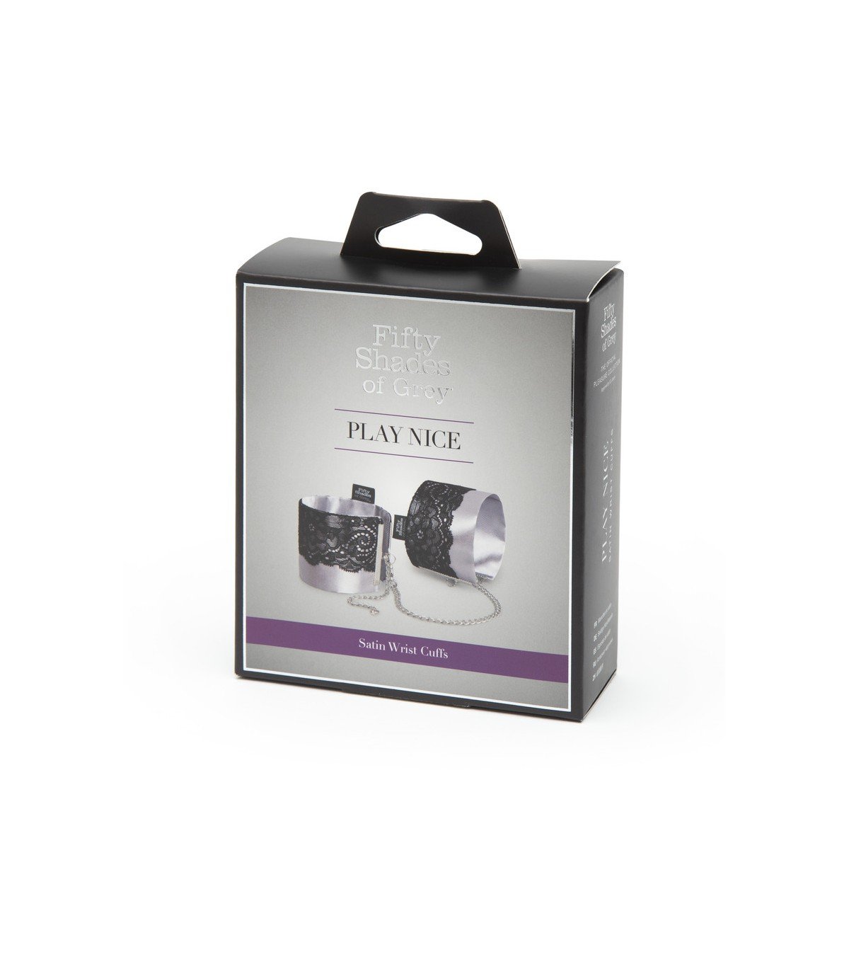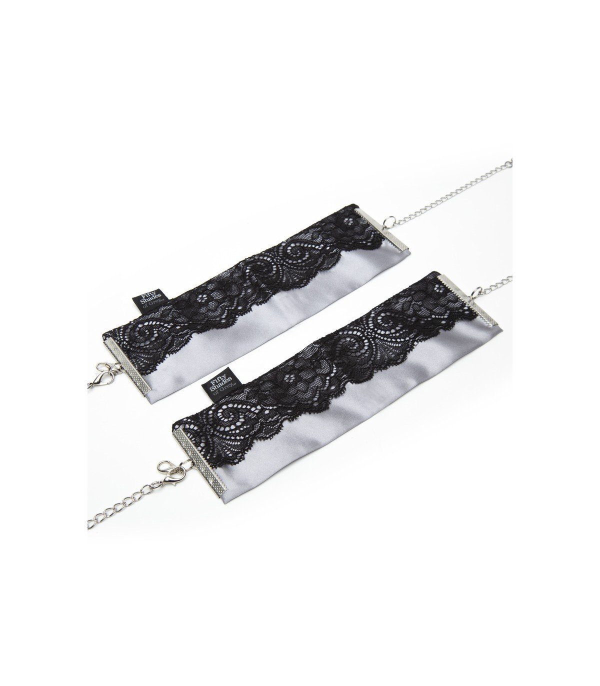 Mantén a tu amante justo dónde y cómo quieres con estas estilosas ataduras inspiradas en la trilogía Cincuenta sombras. Unas esposas para muñecas hechas con suave satén y delicado encaje negro que mostrarán tu lado más fetichista con elegancia.