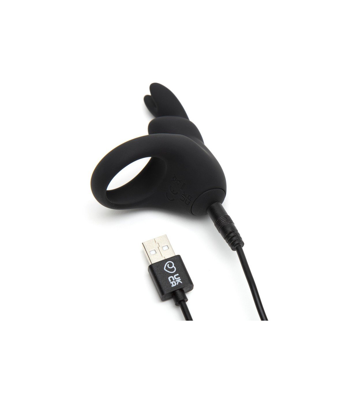 Anillo vibrador con estimulador con forma de orejitas realizado en silicona muy suave recargable.