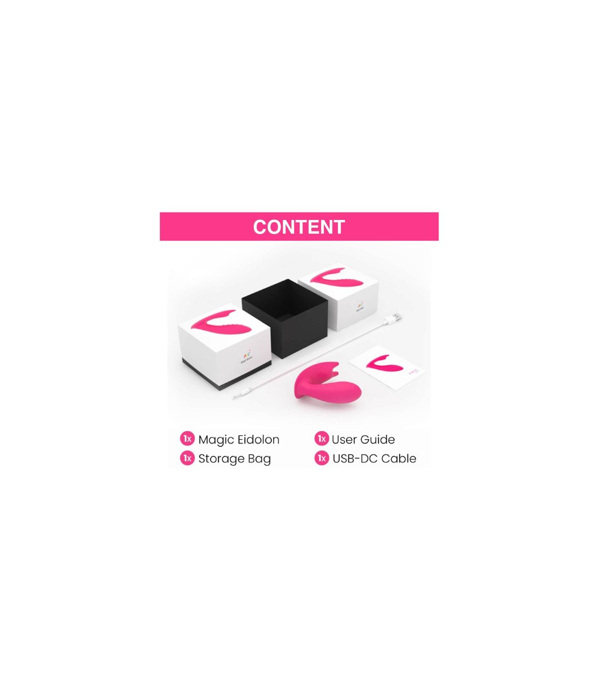Dos motores pueden estimular los puntos C y G por separado o al mismo tiempo. Experimenta diferentes tipos de orgasmo. Magic Eidolon está especialmente diseñado para amantes a los que les gusta aventurarse en sus experiencias amorosas en público y mujeres a las que les gusta que las molesten cuando salen.