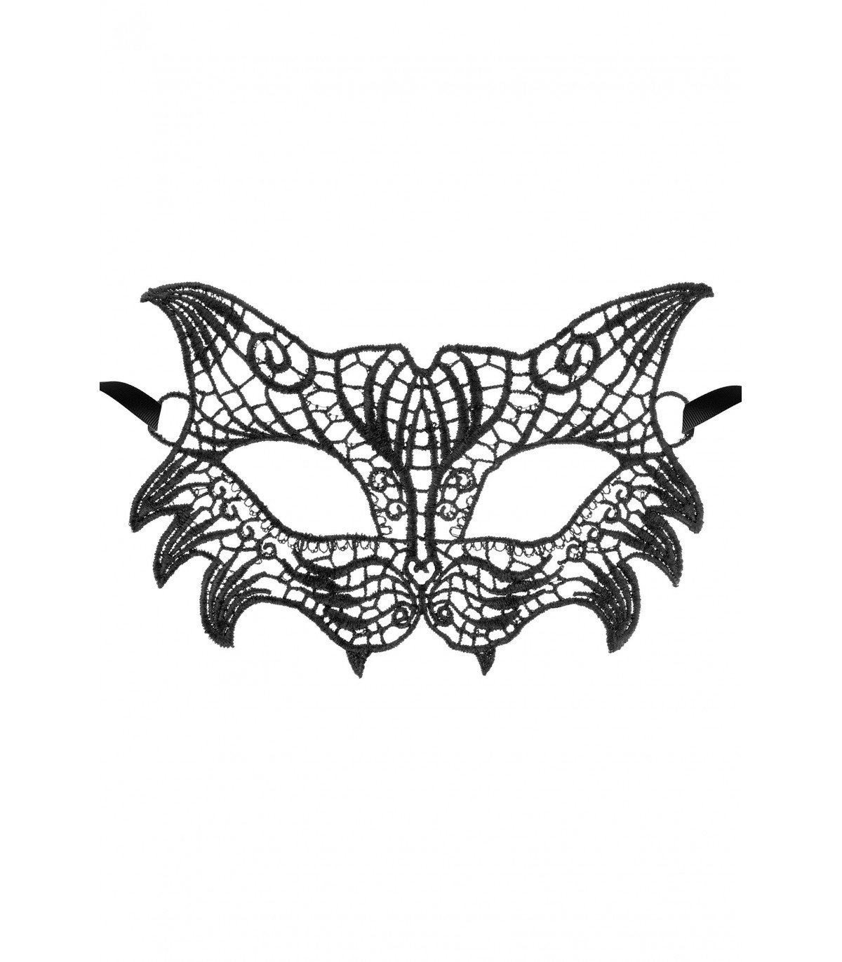 Máscara flexible realizada en guipur con dos tiras de raso en los laterales para un mayor ajuste a cualquier medida.