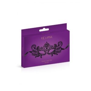 Máscara flexible realizada en guipur con dos tiras de raso en los laterales para un mayor ajuste a cualquier medida.
