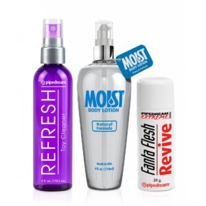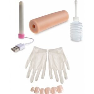 Incluye: guantes, 2 mangas masturbadores, irrigador para su limpieza, juego de uñas de repuesto, calentador de juguetes, lubricante, limpiador de juguetes y polvos regeneradores.