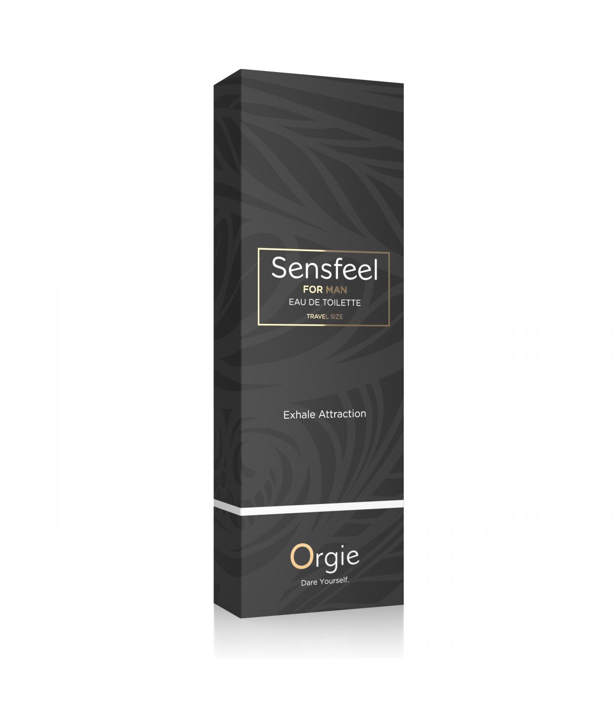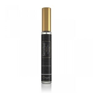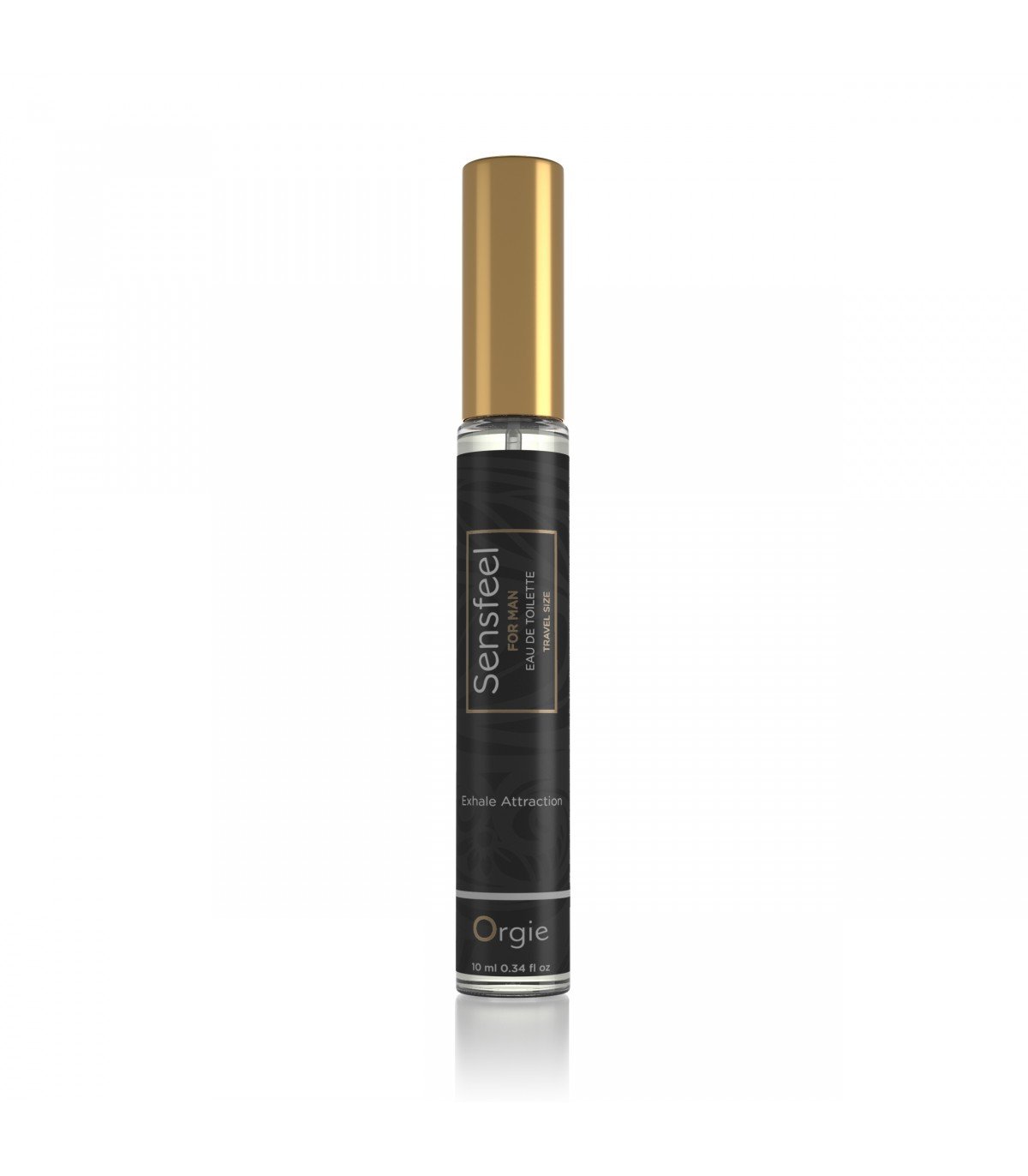 10ml tamaño viaje Edt Parfum Sensfeel for Man, Or fórmula exclusive de Orgie con el activo de base natural Sensfee for Himl, un potenciador de feromonas capaz de aumentar la atracción masculina mediante la acción simultánea de dos de sus componentes: la forskoline, que inhibe la expresión de la enzima 3-beta-HSD, que aumenta la producción de androstadienona, y teaflavinas, que disminuye la actividad de la enzima 5-alfa-reductasa, lo que reduce el metabolismo de la androstadienona, lo que lleva a su acumulación.