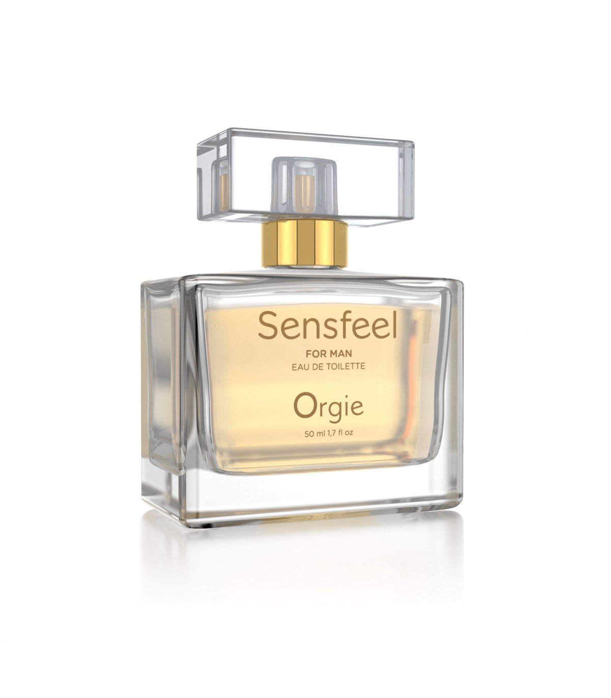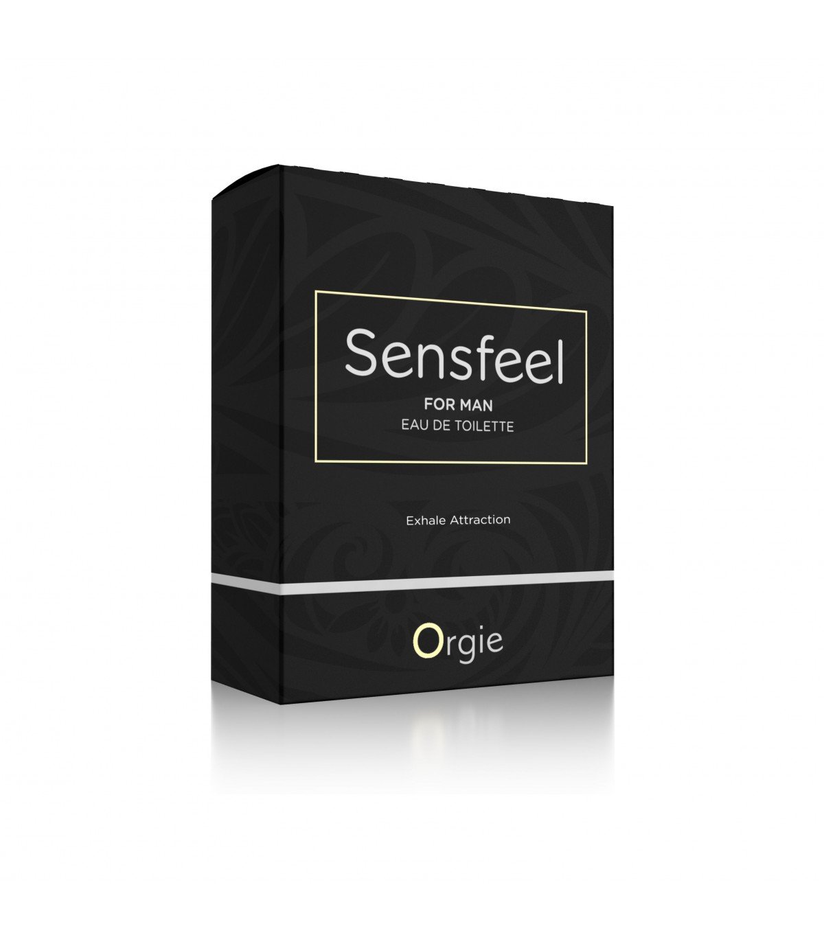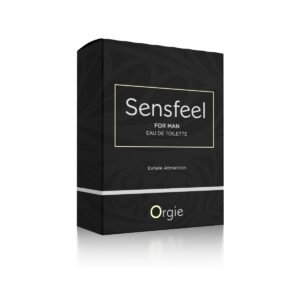 50 ml tamaño regular edt perfume Sensfeel for Man, fórmula exclusiva de Orgie con el principio activo de base natural Sensfeel for Him, un potenciador de feromonas capaz de aumentar el atractivo de los hombres mediante la acción simultánea de dos de sus componentes: la forskolina, que aumenta la expresividad potencia de la enzima 3 beta-HSD, que aumenta la producción de la feromona sexual masculina androstadienona, y de las teaflavinas, que disminuye la actividad de la enzima 5-alfa-reductasa, reduciendo el metabolismo de la androstadienona, lo que lleva a su acumulación.