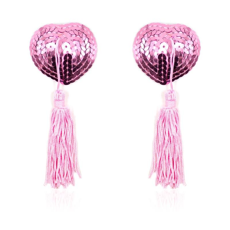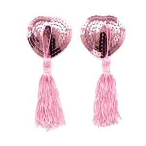 Lo mejor para completar un buen look son unas pezoneras, y si son como estas mucho mejor. Con forma de corazón, estas pezoneras son autoadhesivas. La base de las mismas está recubierta de lentejuelas y de ellas cuelgan unas eróticas y divertidas bolas del mismo color.