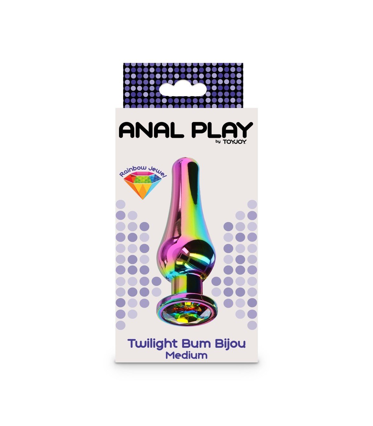 El Twilight Bum Bijou es un tapón anal de calidad con una joya arcoíris en la base, ¡haciendo que tu trasero brille con color! El elegante complemento presenta una silueta cónica y una base acampanada, realzada con una joya arcoíris. Hecho de aluminio, el Twilight Bum Bijou es suave al tacto y completamente seguro para el cuerpo. Un imprescindible de la colección Anal Play de TOYJOY. Es el tapón unisex perfecto para añadir un toque glamuroso y colorido a tus aventuras anales.