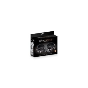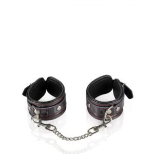Esposas ajustables en color negro y rojo presentado en caja con doble mosquetón.