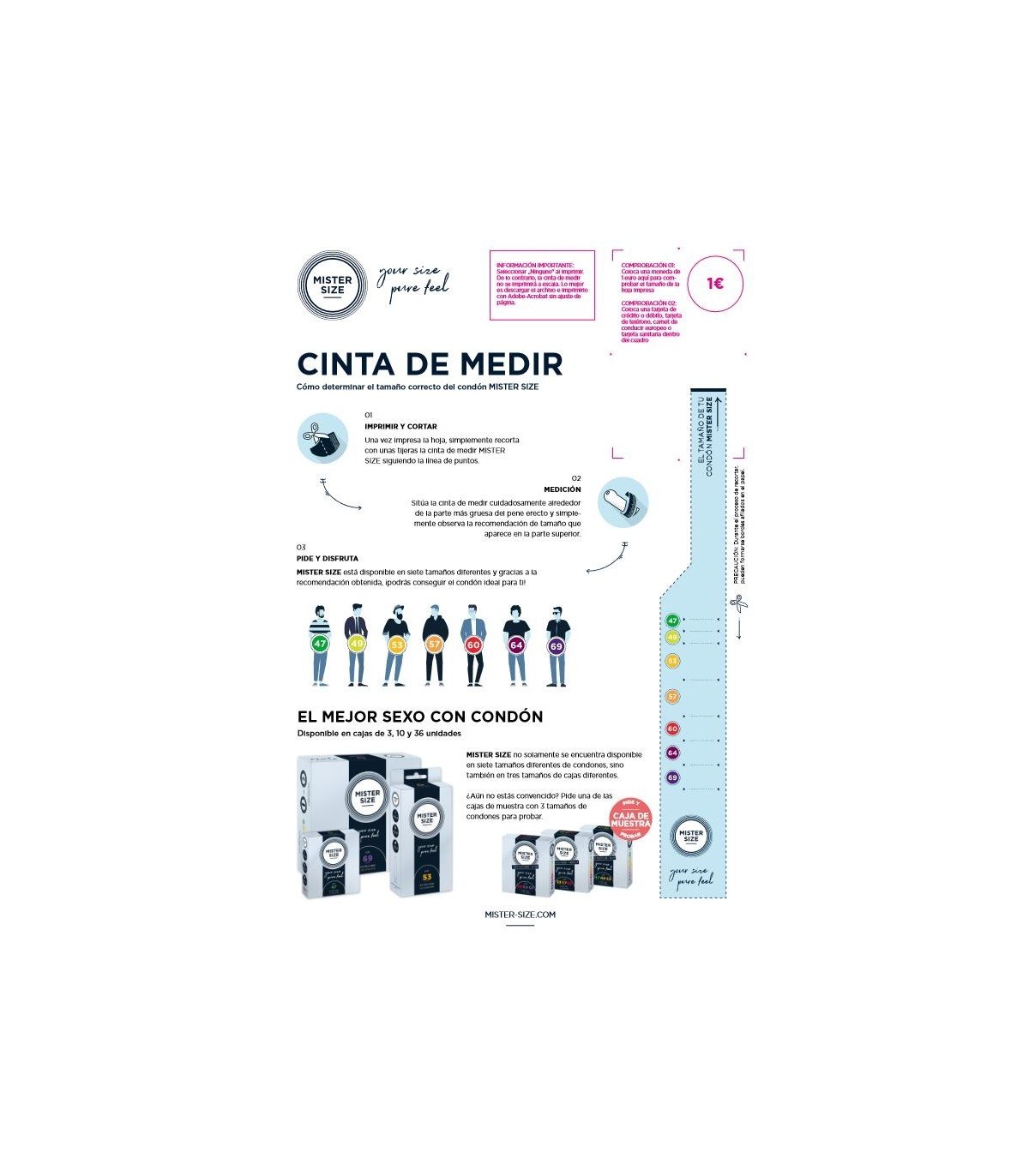 Mister Size es una marca interesada en aumentar el placer sexual con el uso de un preservativo. Por ello, sus preservativos están realizados en un látex de alta calidad extra fino de forma que se siente mucho más en la penetración con su uso así como lubricados con un lubricante suave y sedoso.