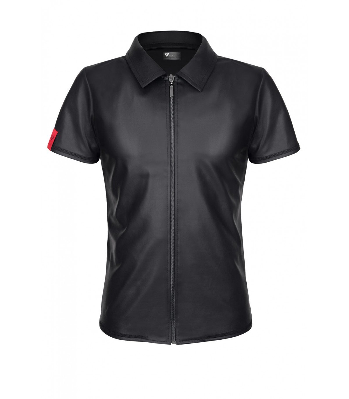 Camisa con cremallera y manga corta efecto wetlook.