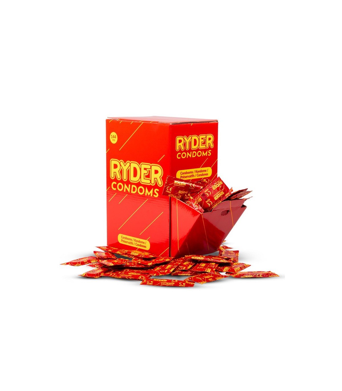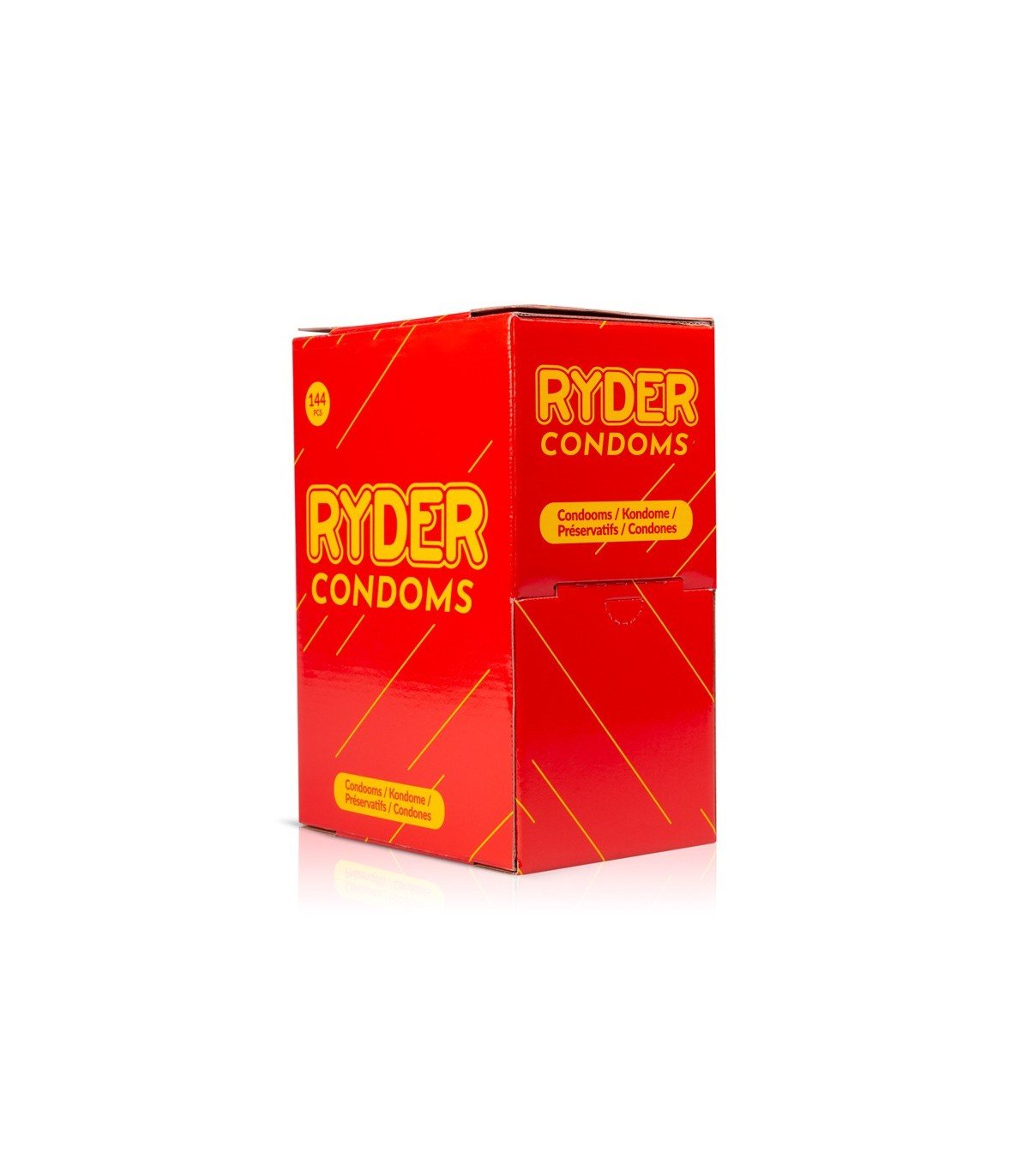 ¡Busca calidad y comodidad con los condones Ryder! Estos condones tienen un diseño y tamaño estándar, lo que los hace adecuados para la mayoría de los hombres. Los condones Ryder tienen terminaciones en los pezones para un espacio adicional en la parte superior y están provistos de lubricante para una penetración suave. Esta caja tiene 144 condones.