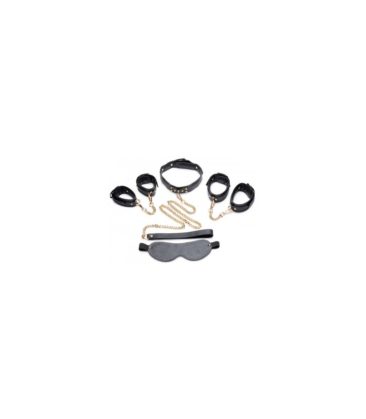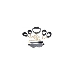 Incluye : venda para los ojos, muñequeras, tobilleras y collar con correa