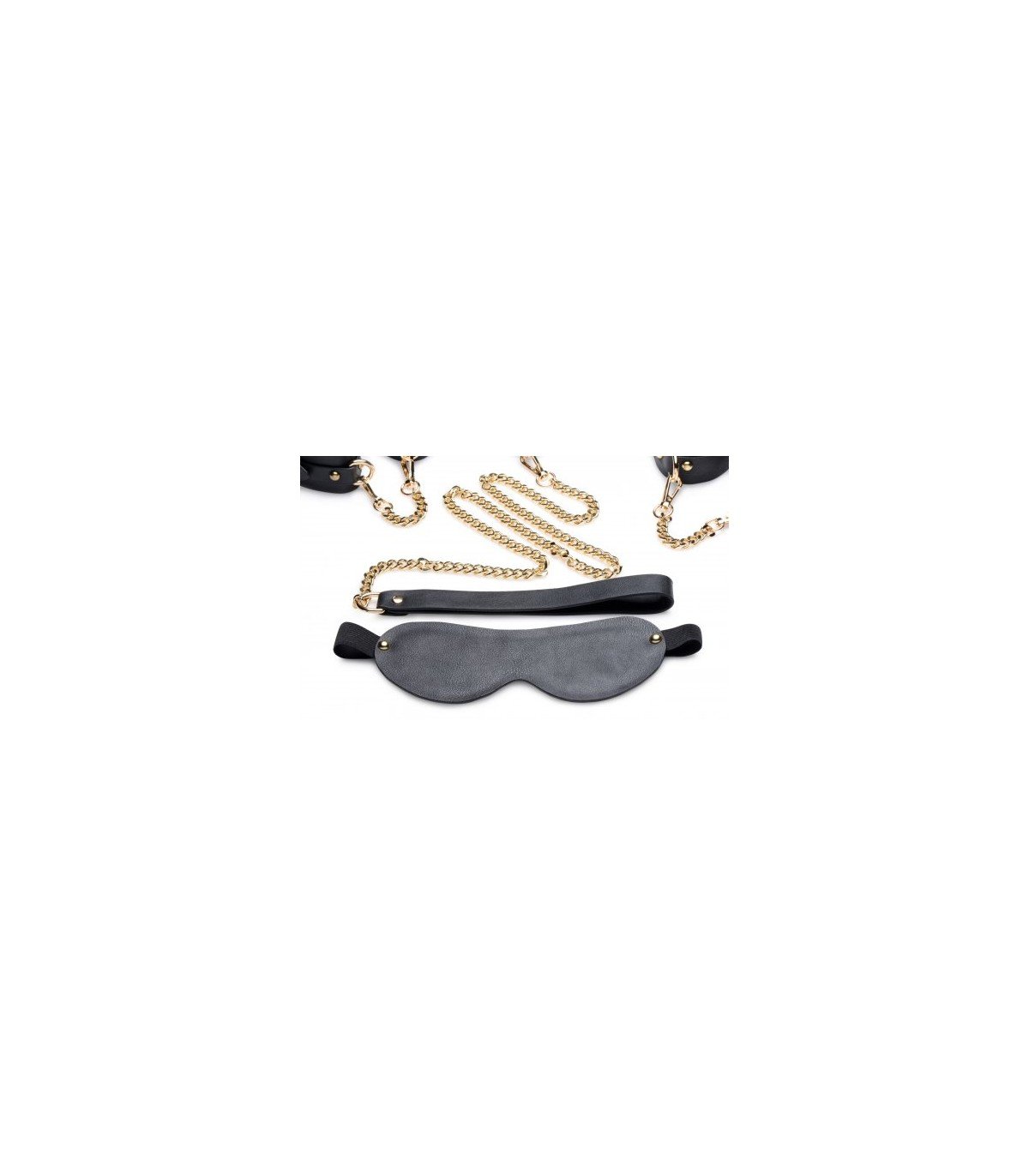 ¡Preséntate y domina con estilo con este majestuoso kit de cadenas y puños! Este kit de Golden Submission está diseñado para embellecer su mazmorra con sus cadenas doradas, herrajes dorados y puños y vendas de cuero negro sensual. ¡Perfecto para los jugadores de BDSM con una inclinación por las cosas buenas de la vida, pero que aún desean un conjunto de restricciones que puedan soportar los empujones y tirones habituales del juego de bondage!