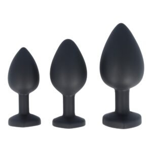 Disfruta y experimenta del placer anal gracias a este set formado por tres plugs anales realizados en silicona muy suave con piedra de color.