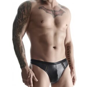 Tanga de hombre wetlook con elástico decorativo en la parte delantera