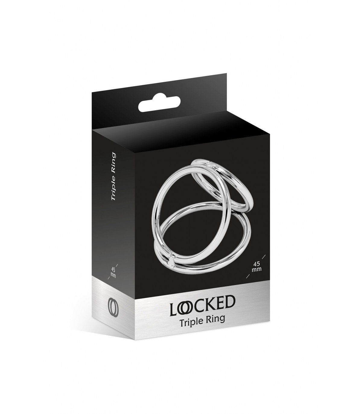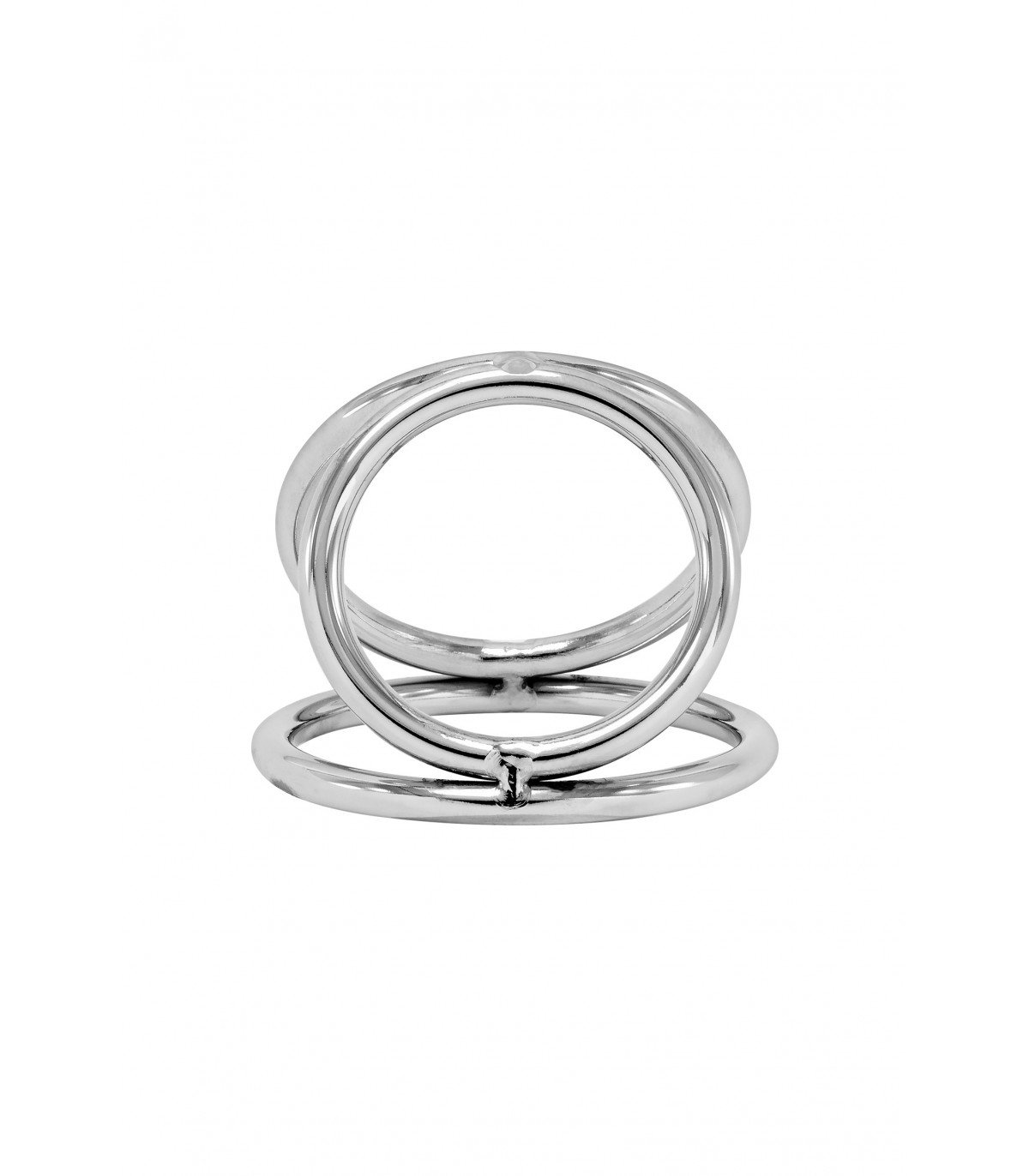 Anillo triple para pene y testículos realizado en acero inoxidable.
