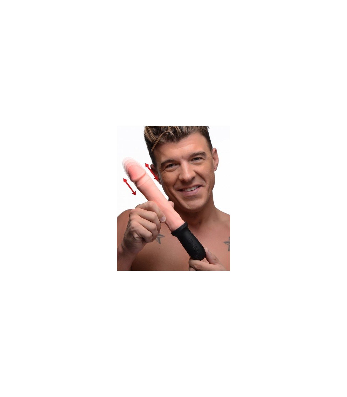 ¡Controla tu placer con este consolador de empuje vibratorio y automático! El diseño realista proporciona una sensación genuina con su cabeza fálica definida y venas longitudinales que serpentean hacia arriba y hacia abajo por su eje negro. Disfruta del empuje hacia adelante y hacia atrás y las poderosas vibraciones con un agarre firme, ¡perfecto para aquellos a quienes les gusta jugar duro y necesitan un agarre más seguro de sus juguetes!