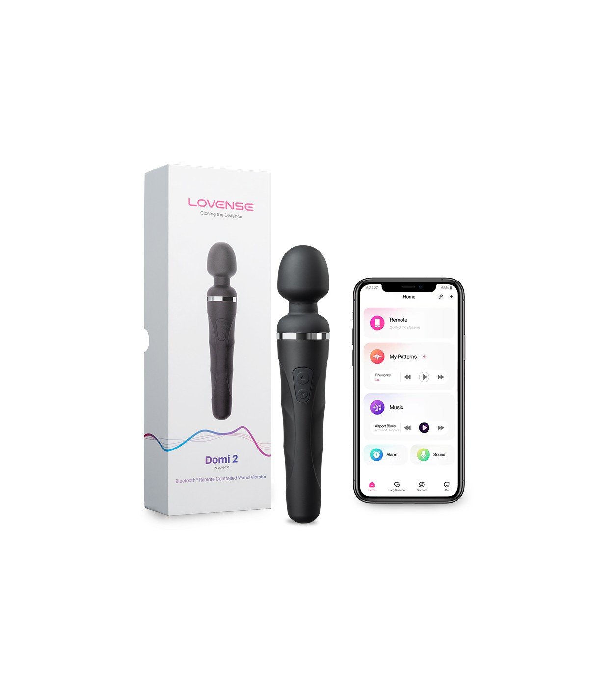 Vibrador con forma de micrófono con cabeza flexible realizado en silicona con control remoto desde cualquier parte del mundo. Esta versión 2 del Domi incluye una batería más duradera, bluetooth 5.0 y una nueva antena más potente.